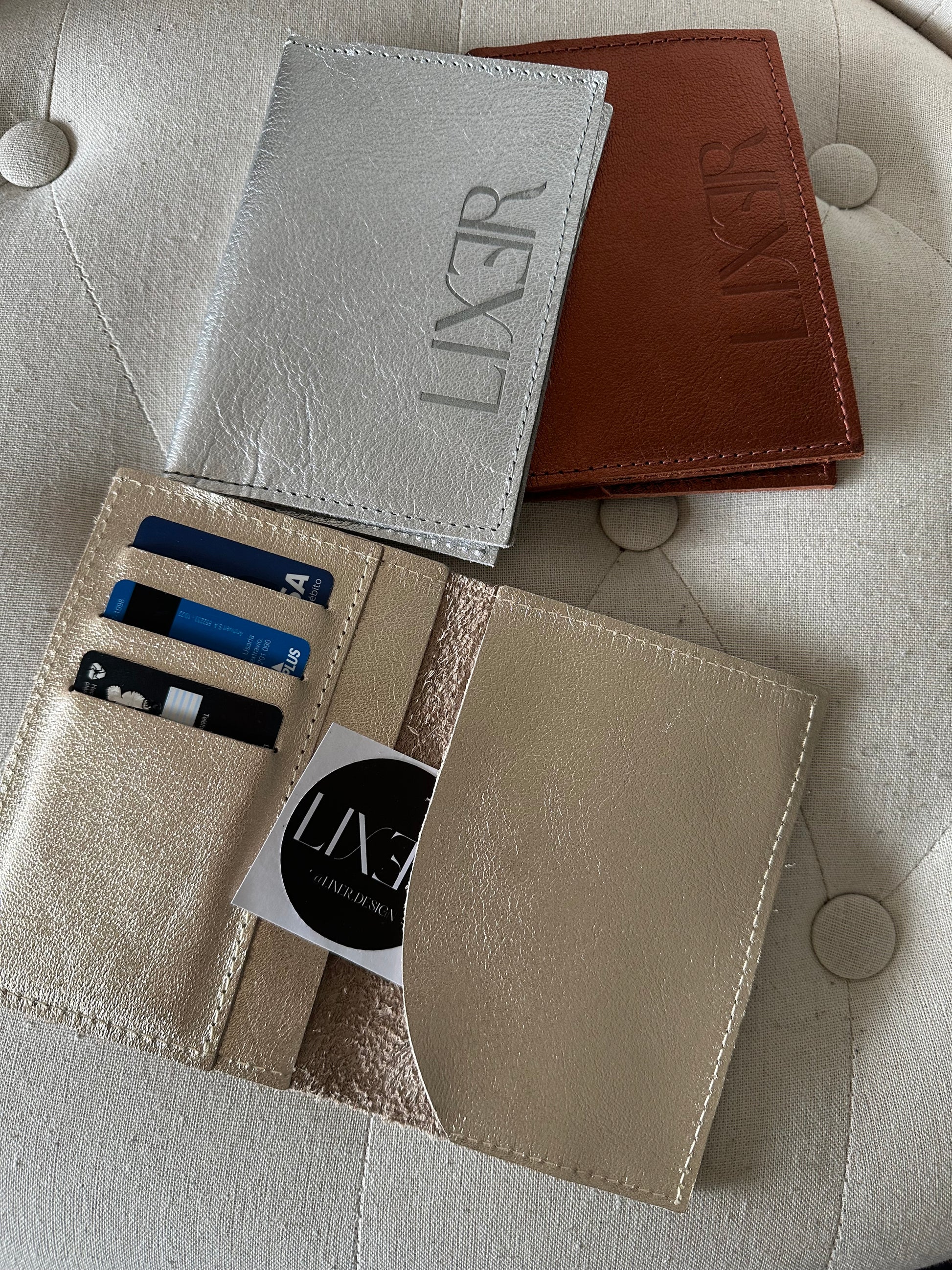 100% de cuero, con compartimientos para billetes, tarjetas, papeles, lo que tú quieras!!
